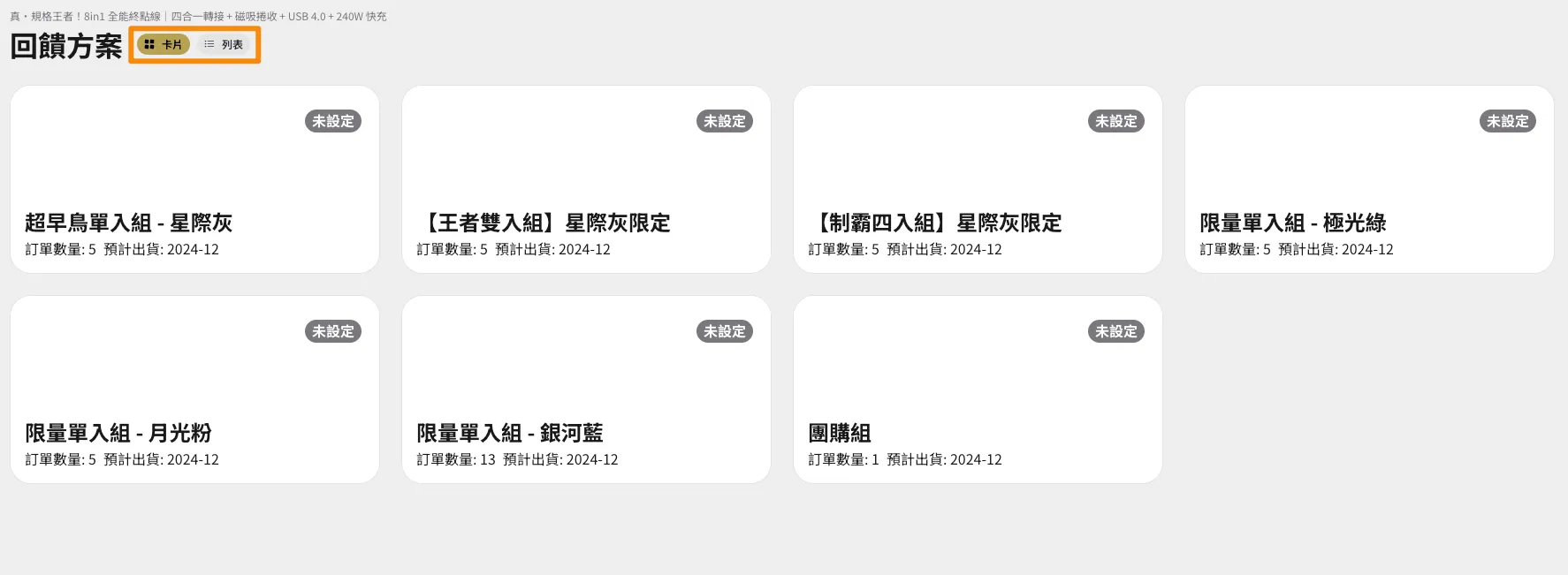 - 系統將直接帶入專案內回饋方案,並可以透過上方按鈕切換 卡片/列表 兩種顯示方式