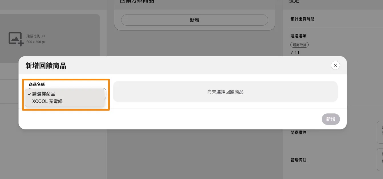 - 回饋方案商品:在此新增該回饋方案內的商品