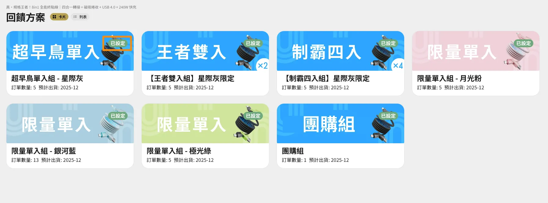 - 確認各回饋方案右上角均有出現 已設定 表示全數設定完成